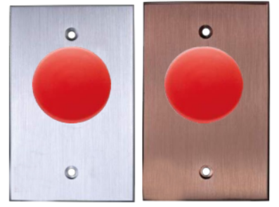 9400 REX switches feature 1 1/2” red mushroom buttons with durable and tamper-resistant, 1/4” thick aluminum cover plates. All are supplied with 2 snake eyes security screws and wrench.