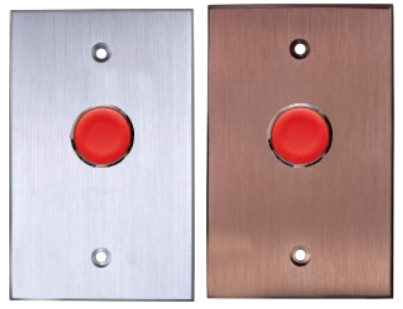 9600 REX switches feature 2 3/8” red mushroom buttons with durable and tamper-resistant, 1/4” thick aluminum cover plates. All are supplied with 2 snake eyes security screws and wrench.